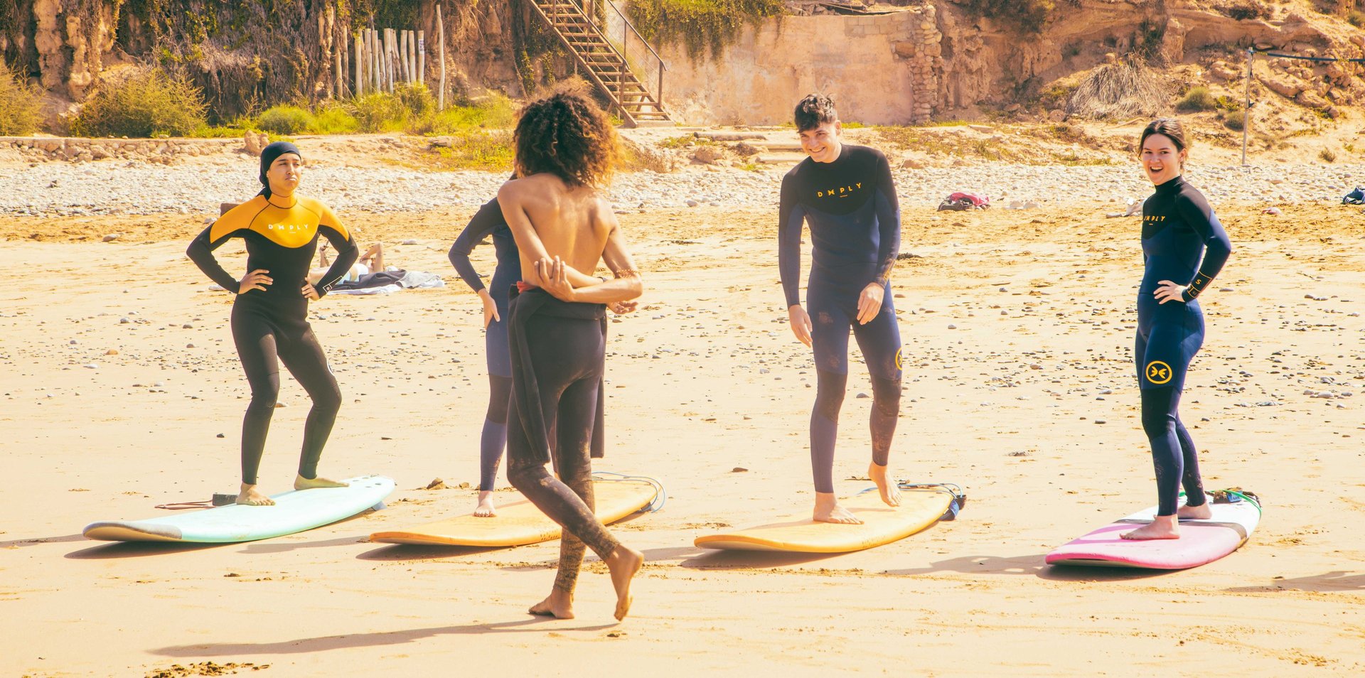 Slow down and settle into the rhythm of our Surf Camp Morocco, where good waves, warm smiles, and ocean views shape every day. This is your ultimate all-inclusive surf package—featuring daily surf sessions with expert local guides who know every break of Tamraght and Taghazout Bay. After a day in the water, relax back at Desart Hostel with cozy accommodation, delicious homemade meals, and the easygoing energy of our surf community.